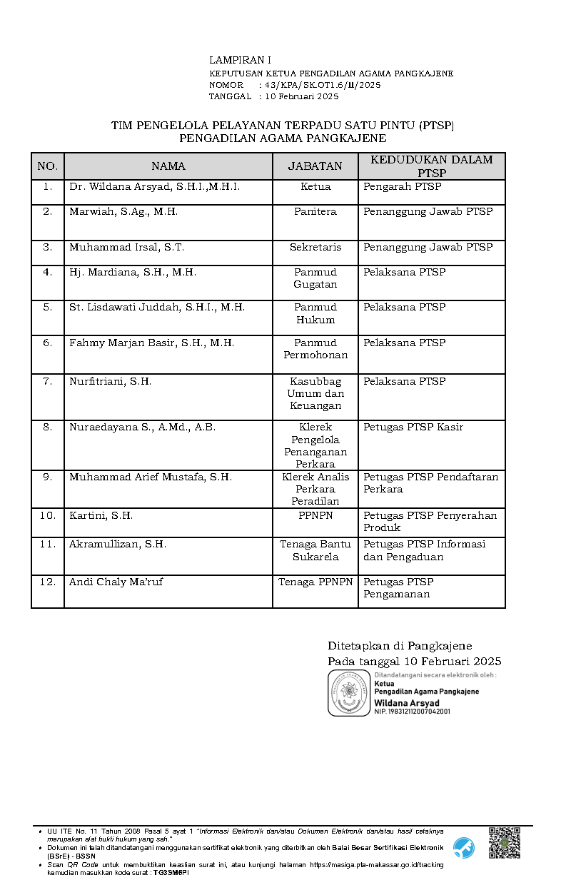 Surat Keputusan Ketua Pengadilan Agama Pangkajene