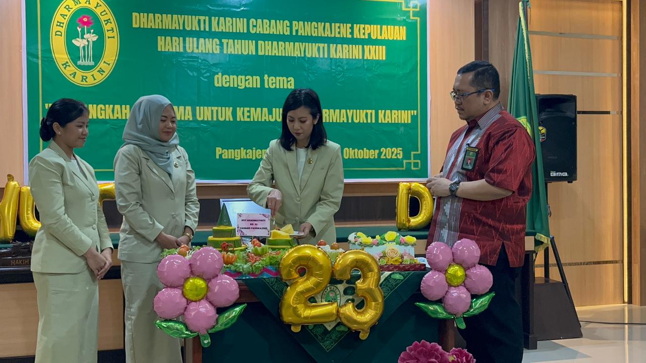 Pangkajene Kepulauan- 24 Oktober 2025 - Pukul 09.30 Wita, Dalam rangka memperingati Hari Ulang Tahun Dharmayukti Karini XXIII tahun 2025, keluarga besar Dharmayukti Karini Cabang Pangkajene yang terdiri dari anggota Pengadilan Agama dan Pengadilan Negeri Pangkajene menggelar acara peringatan di Aula Ruang Sidang Cakra Pengadilan Negeri Pangkajene.